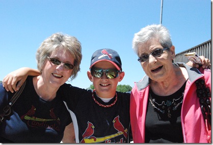 Grant had his own cheering section. My mom and dad came and brought my grandma. They had been in KC visiting family so they stopped by the ballpark on the way home to catch a game.